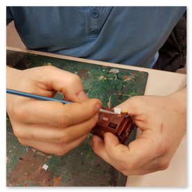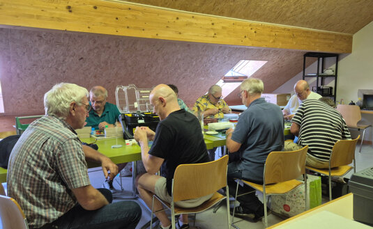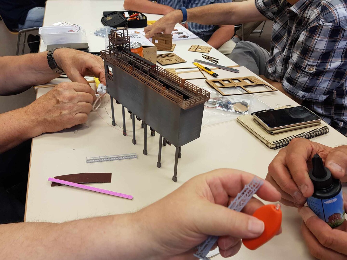 Wir treffen uns jeden Montagabend ab 19.30 Uhr (ausser an Feiertagen) in Gonderange in unserem Vereinsraum im Schulgebäude in der rue d'Ernster und gehen dort in gemütlicher Runde unserem Hobby nach. Dabei wird fast alles gemacht, was mit Modellbau und Modellbahn zu tun hat. Löten von Messingteilen, Erstellen von Hecken und Büschen, Zusammenbau von Bausätzen, Lackieren von Modellen usw.